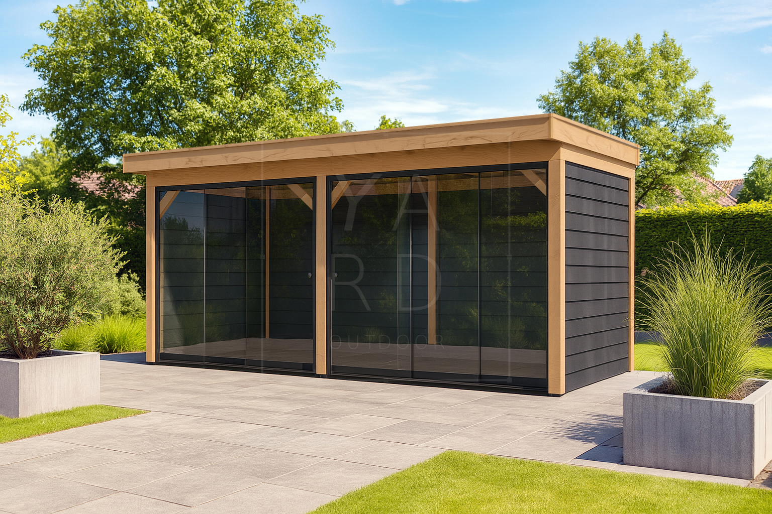 Vrijstaande overkapping Achtertuin Grandiose Schuur Tuinverblijf
